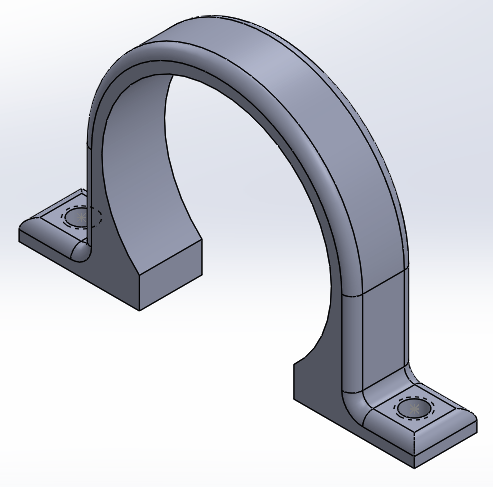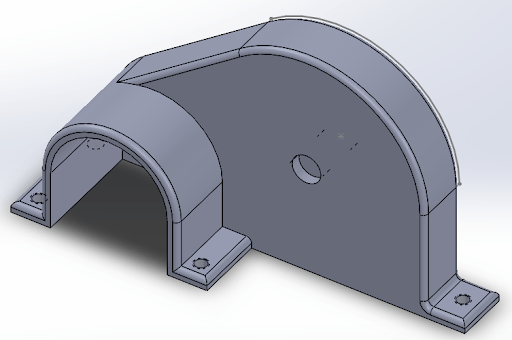 Both of these parts changed substantially during development. The motor mount underwent major changes. Instead of a loop to hold the motor in place with friction, I decided to take advantage of four mounting holes in the motor. To do this, I designed a plate with four unobtrusive mounting holes aligned with the holes in the motor. Additionally, I created two arms which went under the motor to support it and keep it level.