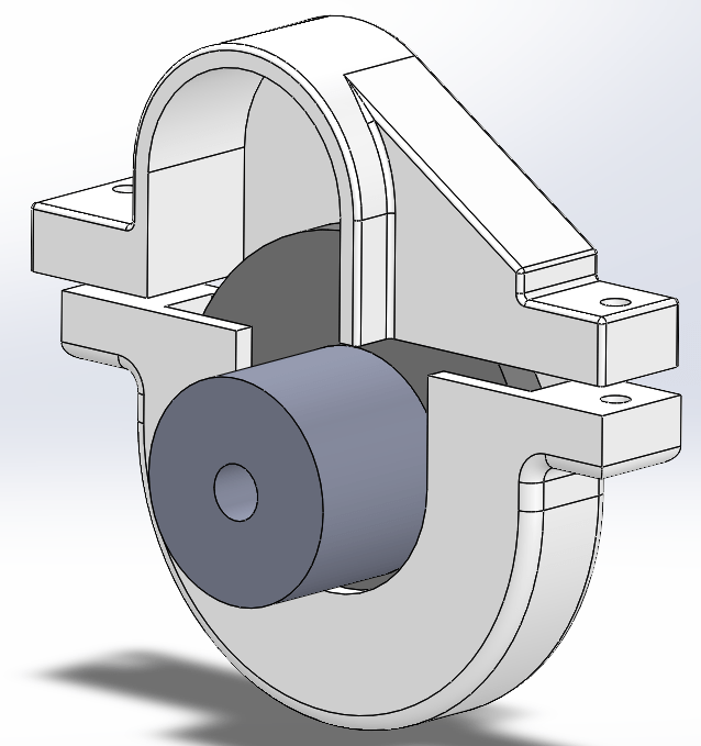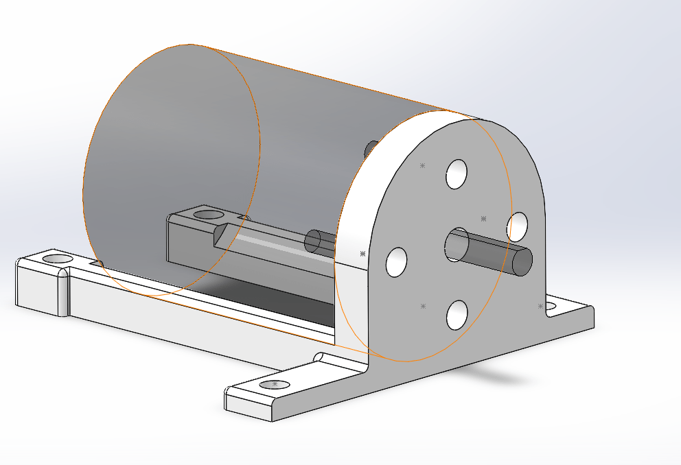 Figure 3: The final version of the rover’s motor mount. Note that the motor has been made transparent to show the supports.