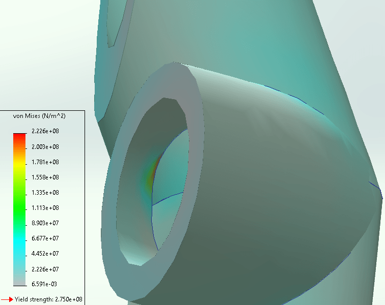 Figure 4: The right triple junction, which displays the fictional peak stress in the vertical force simulation.