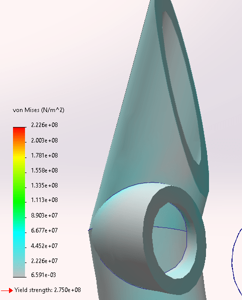 Figure 2: The results of the simulated vertical force test on the first year’s frame. Due to a simulation error, the maximum real stress was found to be 1.34*108 N/m2