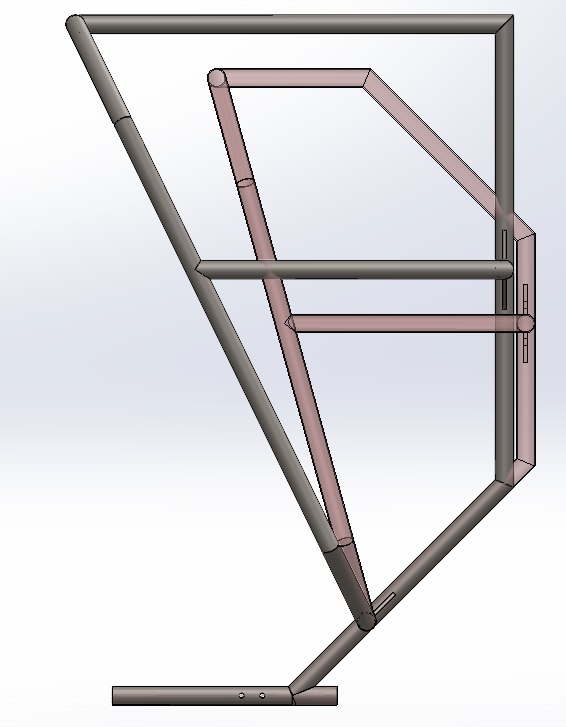 Figure 5: The frame submitted for manufacturing. Note several flaws in the frame’s design, such as two aluminum tubes slowly merging into each other.