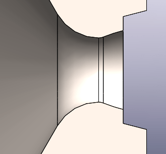 The combustion chamber’s wall is 1.65 mm thick with the primary constraint being thermal in nature. Via hand calculations using the formula for hoop stress a safety factor slightly greater than 2 and a value of 205 MPa as the yield strength of 316L stainless steel[7], I determined that the minimum thickness the combustion chamber with a factor of safety of 2 is approximately 0.14mm. As a result, a combustion chamber which can be 3D printed will not suffer a structural failure. However, I also need to prevent engine rich combustion. I plan to use a simple water based cooling system to hold the exterior temperature of the combustion chamber to 100 degrees Celsius (212 degrees Fahrenheit). This can be modeled as conduction through a wall. I found the thermal conductivity of 316L stainless steel to be 15 W/m*K[8], assumed off of various papers[9][10] which use engines with chamber pressures similar to the Pliny that I should design around a heat flux of 10 MW/m2. I also required that the internal surface of the engine must remain at 1200 Co. With this information, I calculated the maximum allowable thickness of the combustion chamber using a variation of Fourier’s law of heat conduction, a value of 1.65mm.[11] This became the thickness of my combustion chamber since it was thick enough to be structurally sound yet thin enough that I would likely be able to prevent engine rich combustion.